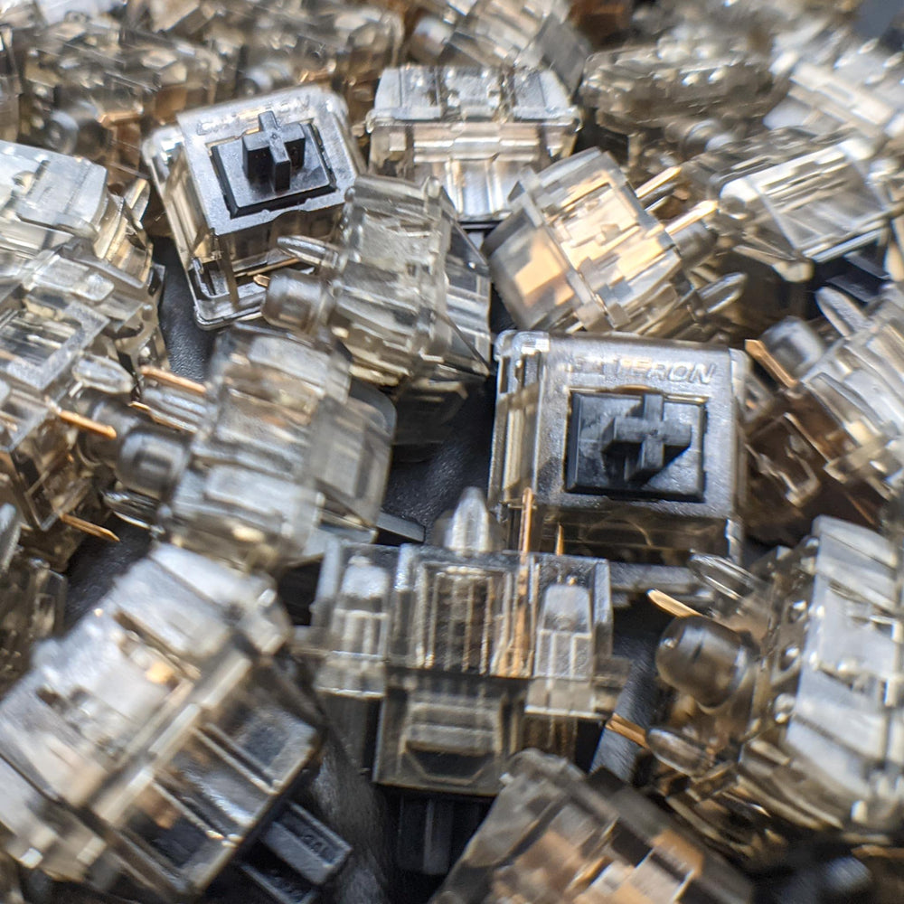 The Gateron Ink switches feature a transparent smokey housing. This switch is made out of a new type of plastic. The spring inside is coated black to match the switch housing. This switch is very smooth and has little spring crunch.